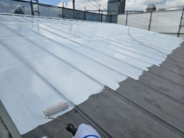 下塗りには、屋根材と中塗り・上塗りで使用する塗料との密着性を上げる役割があります。
