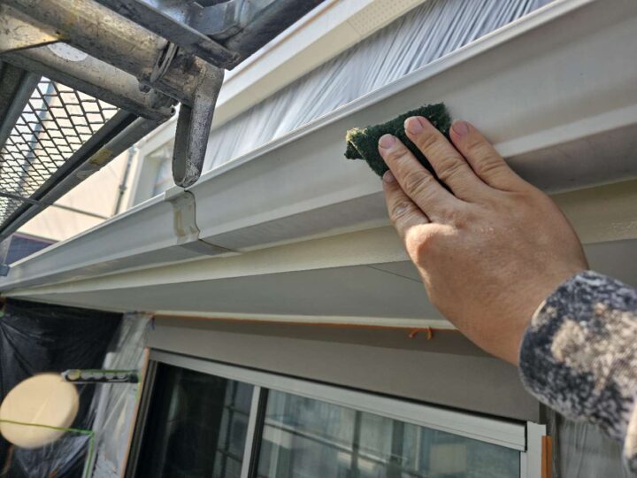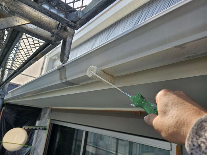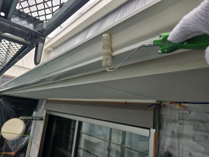 鉄部には錆止め塗装をおこない、その後手塗にて1回目の塗装を行います。