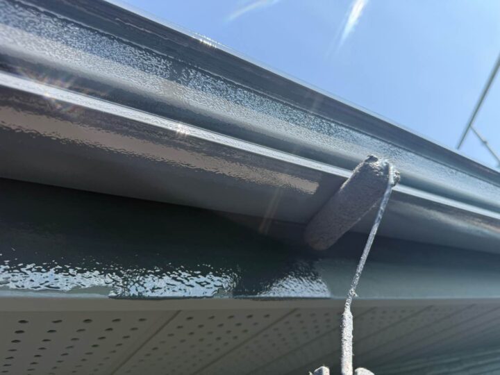 鉄部に錆止め塗装をおこない、その後手塗にて1回目の塗装を行います。