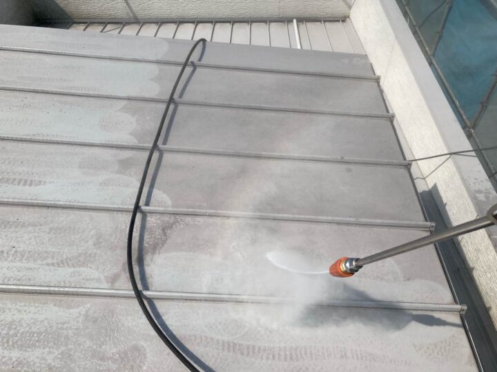 屋根の高圧洗浄を行い、コケや汚れなどを除去します。